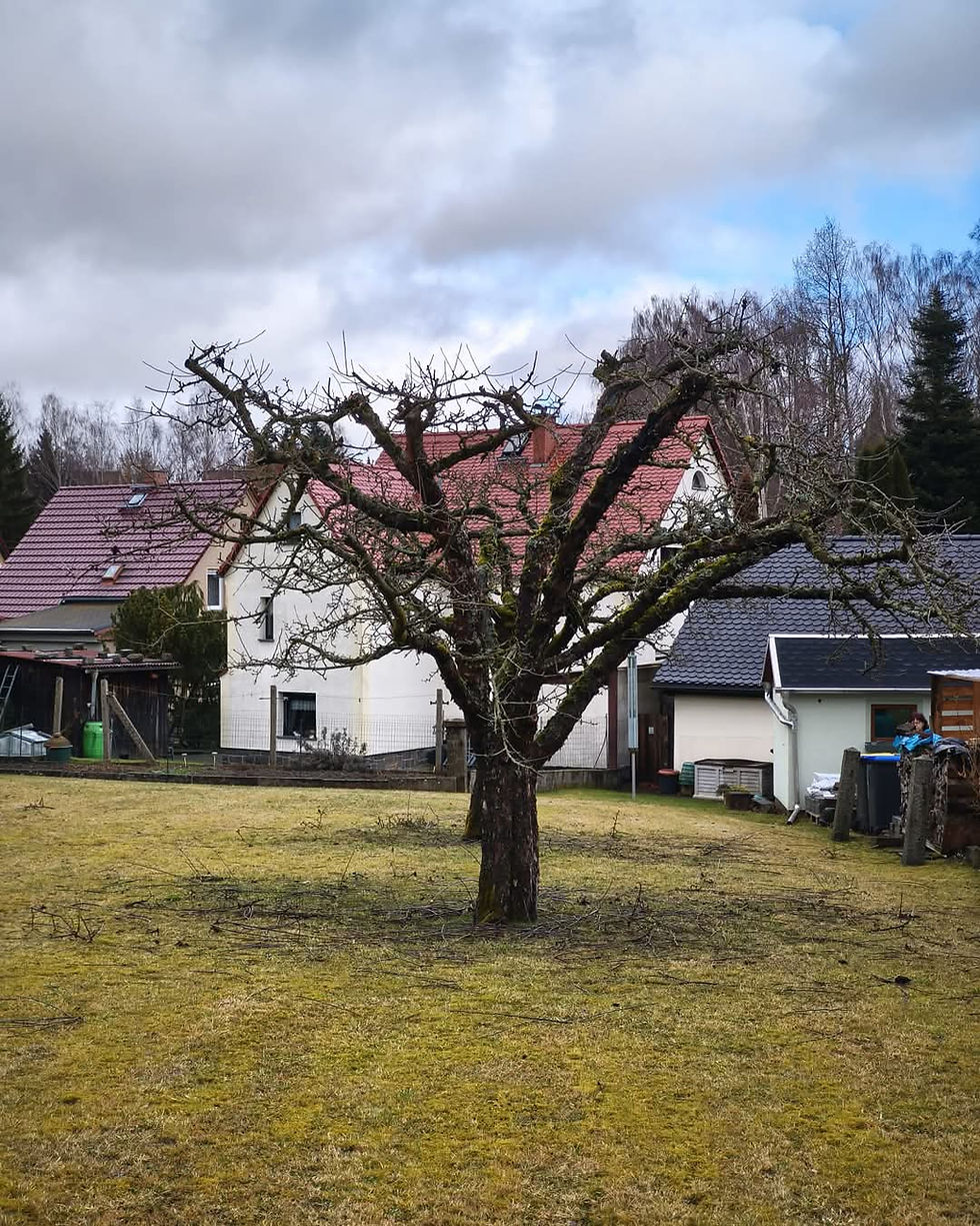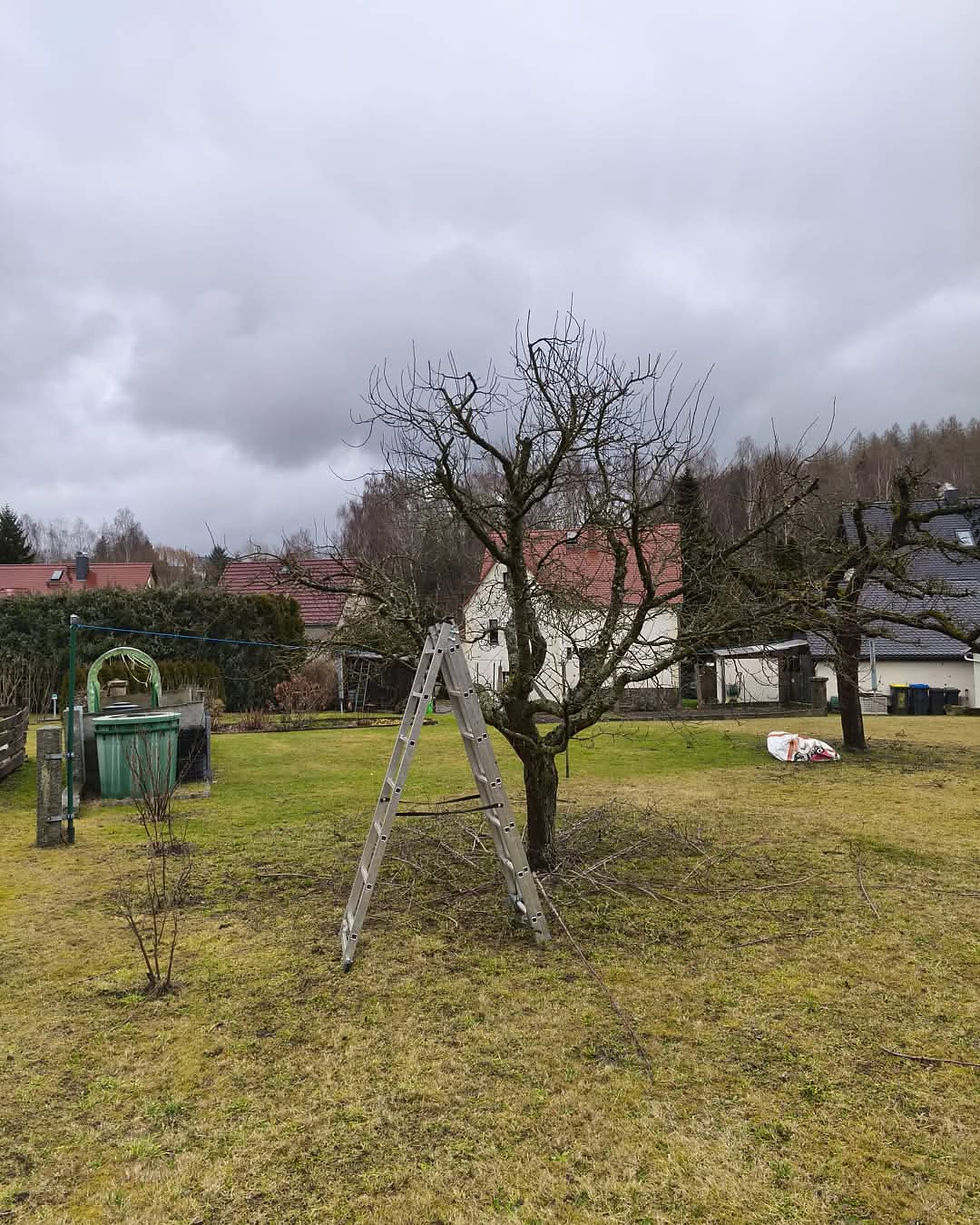 Unser Auftrag lautete: Fachgerechter Obstbaumverschnitt unter schwierigen Witterungsbedingungen – zuverlässig, sauber und zum richtigen Zeitpunkt.